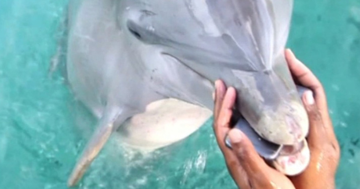 A friendly dolphin retrieved the phone of a woman which fell into the ocean