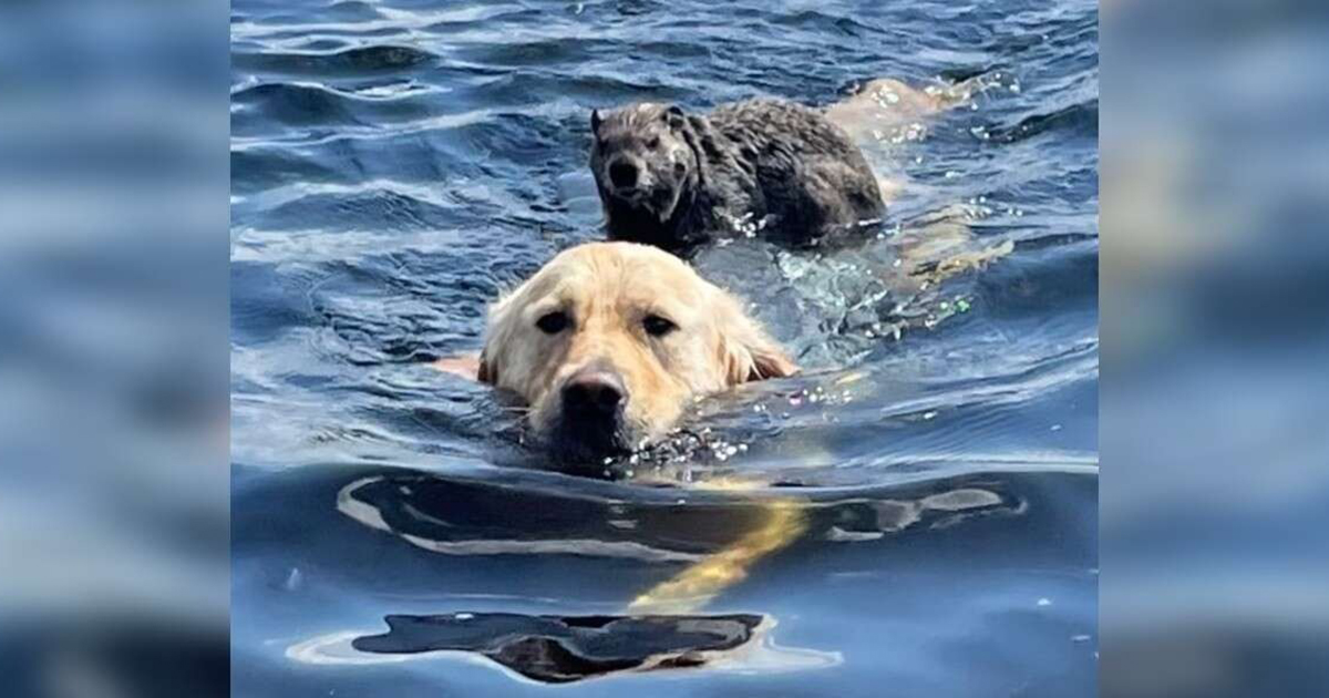 The dog was swimming in the lake when the woman noticed something in the water nearby. At first, he thought it was a big stick, then a mysterious object jumped on the dog’s back.