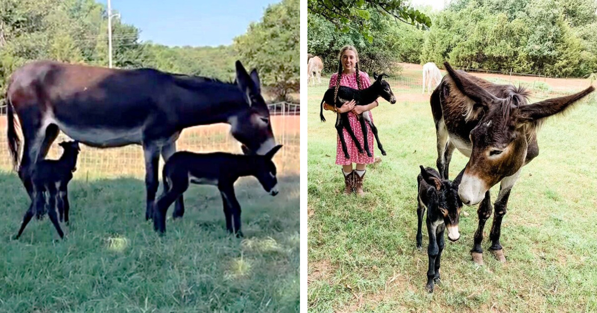 A female donkey named Belle delivered babies in Oklahoma, a beautiful boy, and a girl. It was excellent news for her owner Saundra Traywick since the chance of giving birth to twins for donkeys is close to 1.5%.