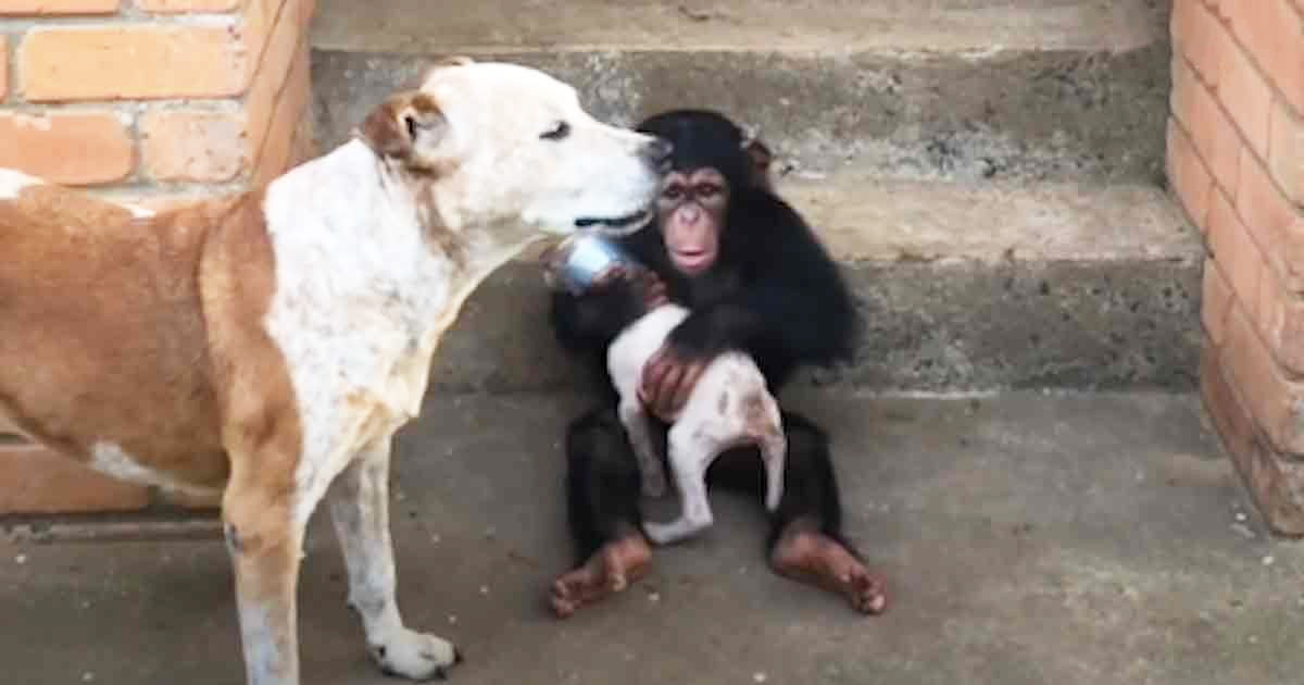 The puppy was small in size, but the sanctuary chimpanzees could watch over it. Eventually, when the dog was fully recovered, the shelter decided to find him home forever.
