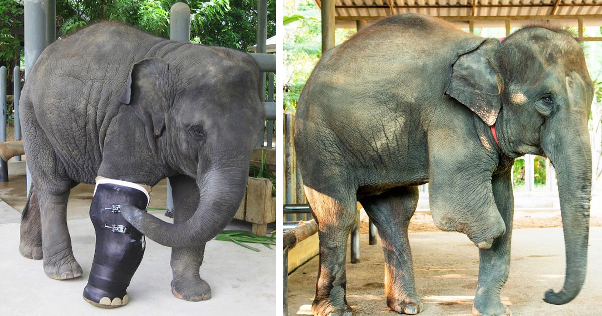 When the elephant was only seven months old, the worst happened. He put his foot on the mine and lost his right front leg. the little elephant’s life seemed to be ruined forever.