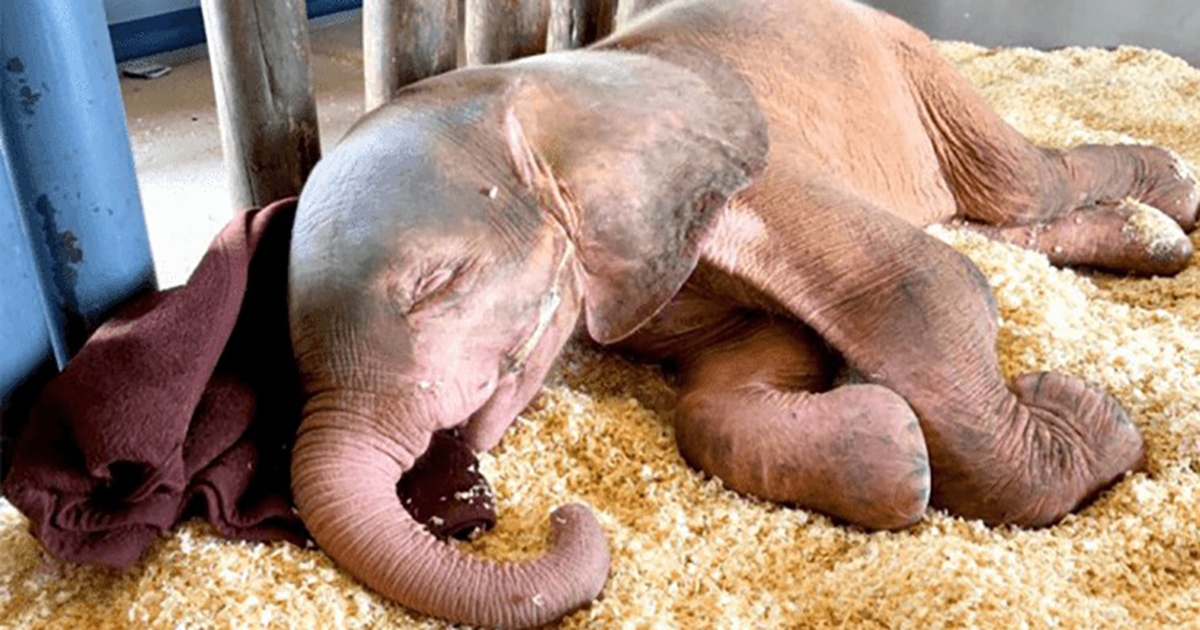 A helpless baby elephant has been rescued after it was reportedly trapped for four
