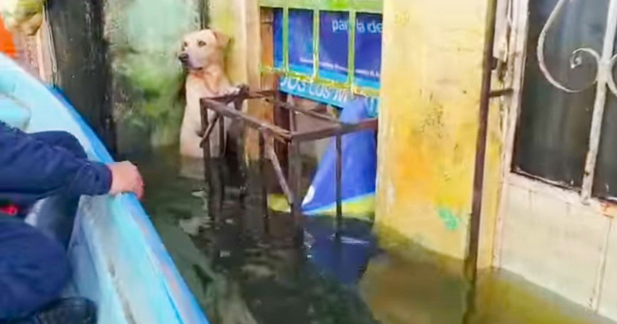 Rescuers in Mexico helped an unfortunate Labrador who was trapped during a flood in