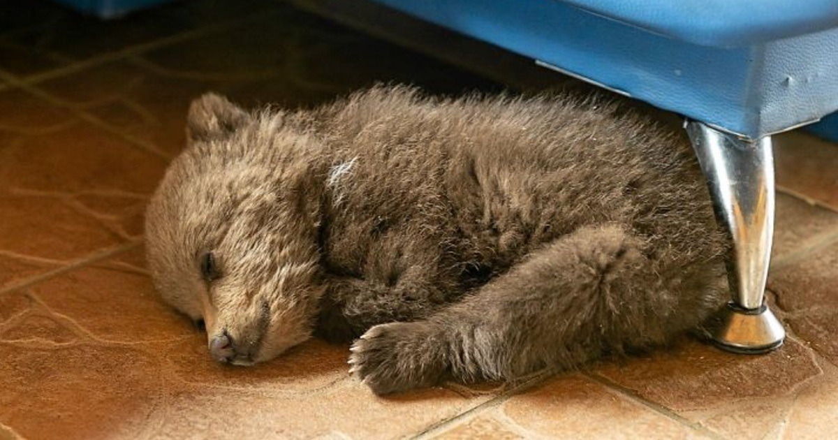 The tiny bear cub was strolling in the village searching for food. The kind-hearted