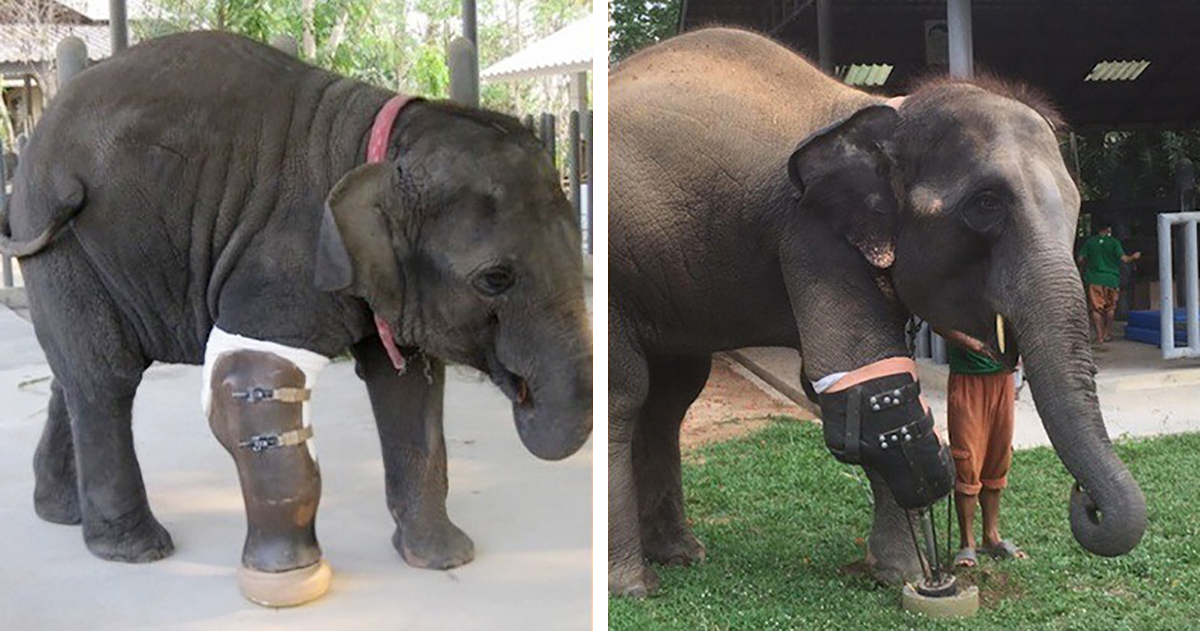 Here is an incredible and unique elephant Mosha who had lost her leg because