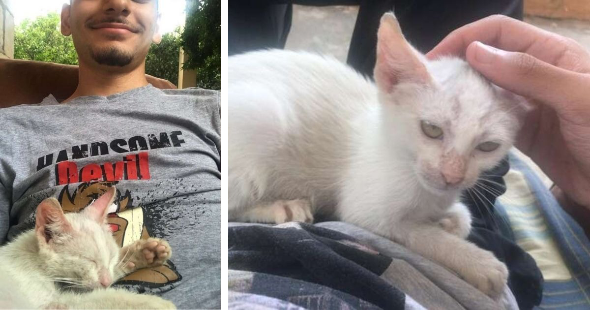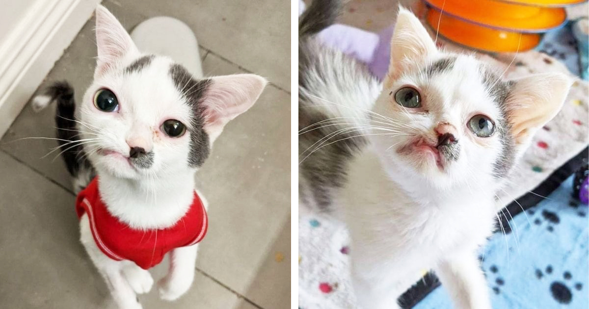 Here is a cute little cat named Pinocchio who has a deformed face which