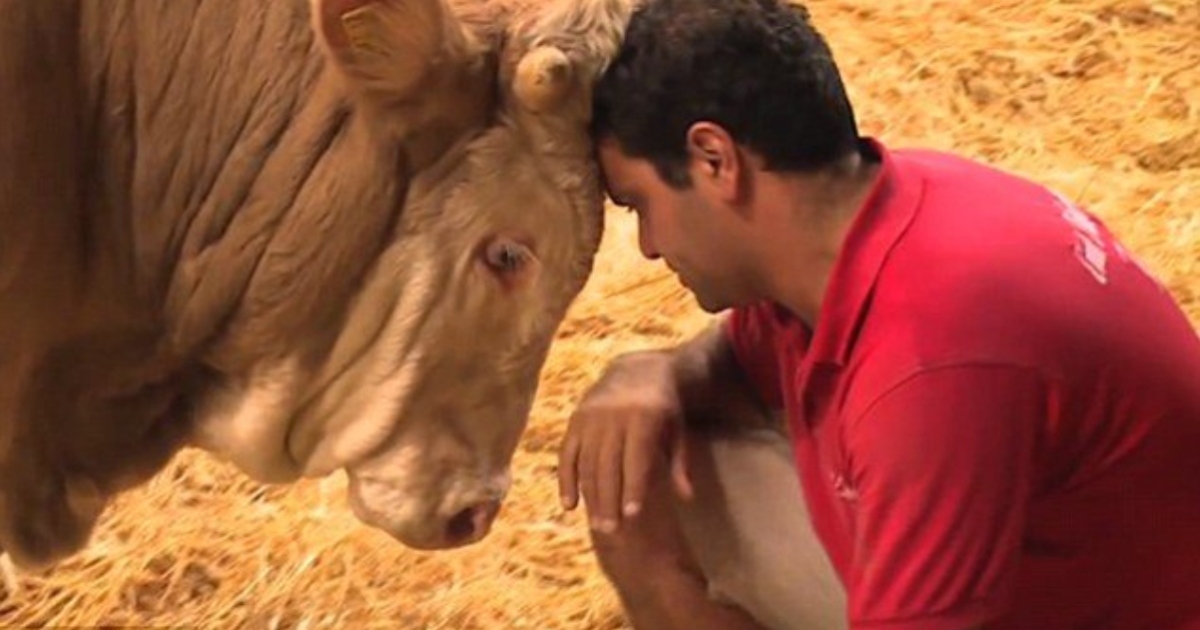 Heartbreaking footage shows the bull, who has been chained up most of his life,
