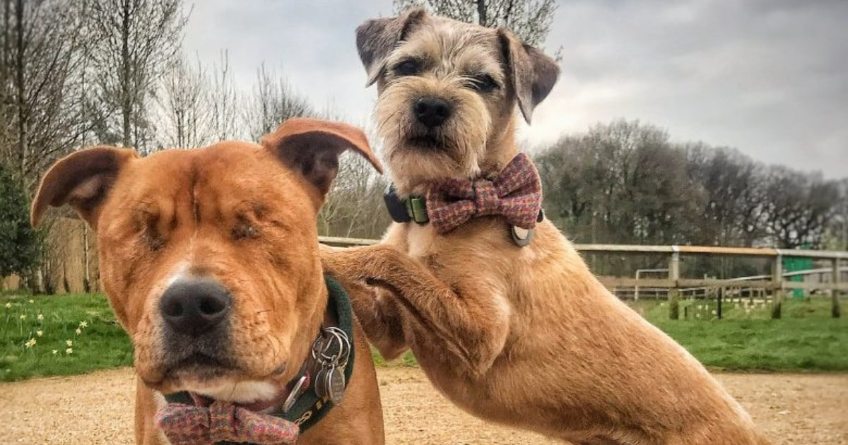 A half-breed Staffordshire Bull Terrier named Amos is completely blind and sometimes can’t even