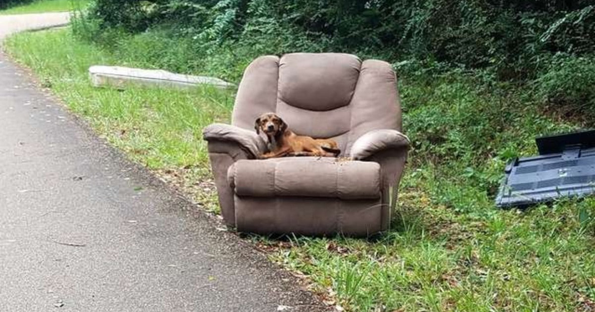 Among the old furniture and daily garbage, was a dog huddled into a ball,