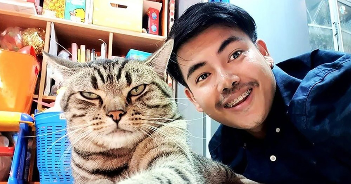 A young man from Thailand is constantly sharing photos of his beloved cat with