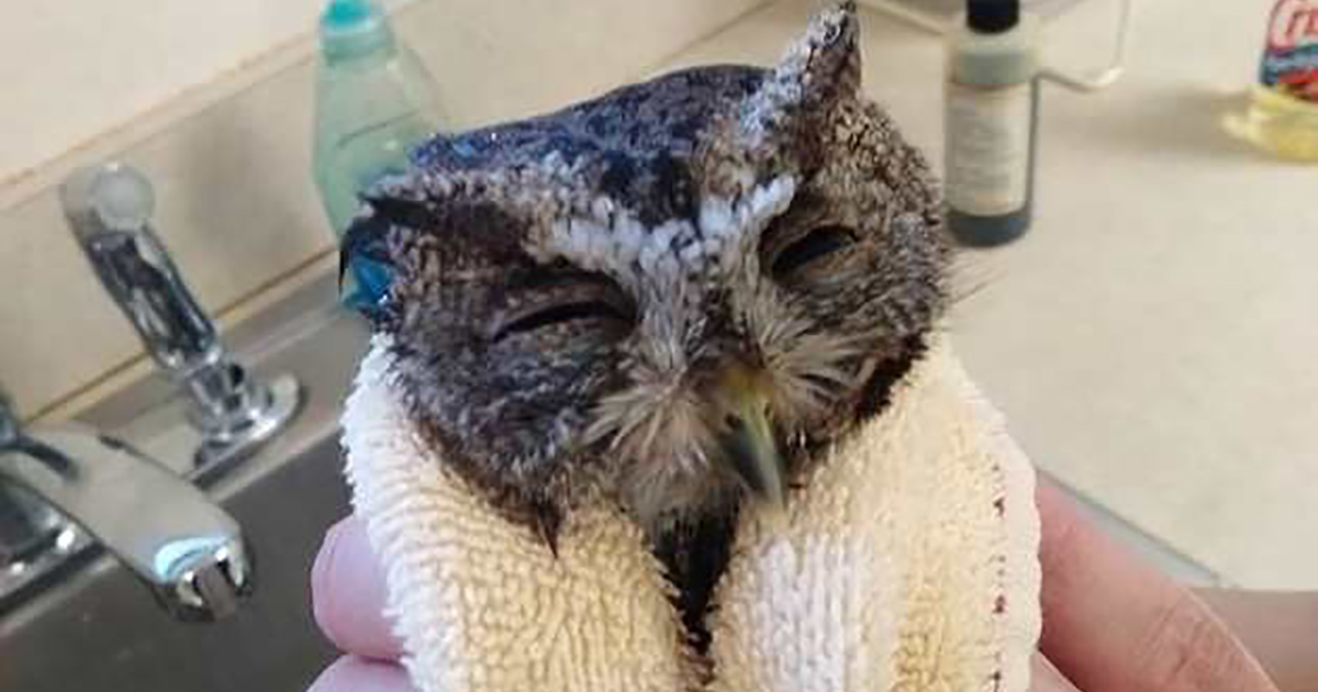 In Florida, a small owl fell into a so-called glue trap (such people put