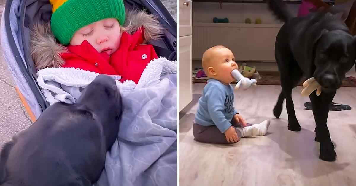 The nice dog Elvis and the little baby boy Ted became close friends since