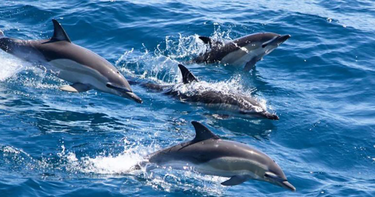 A university professor Khosrow Khosravani noticed a pond of dolphins swimming nearby his yacht.