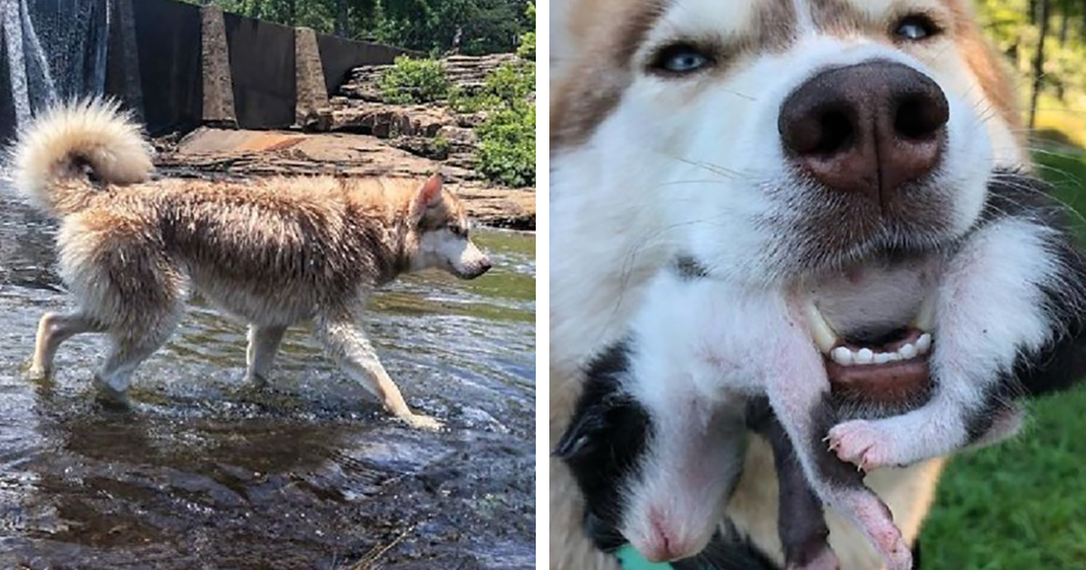 The faithful Husky named Banner is the most protective and loyal guardian for her