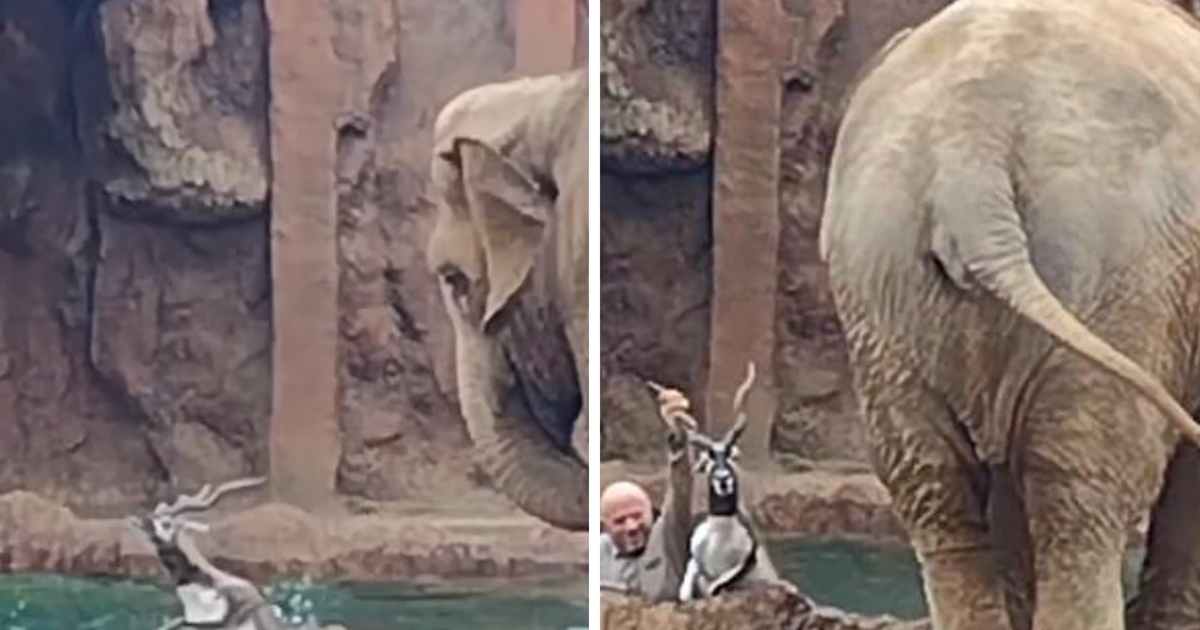 After an antelope friend falls into the water, the elephant calls for help. For