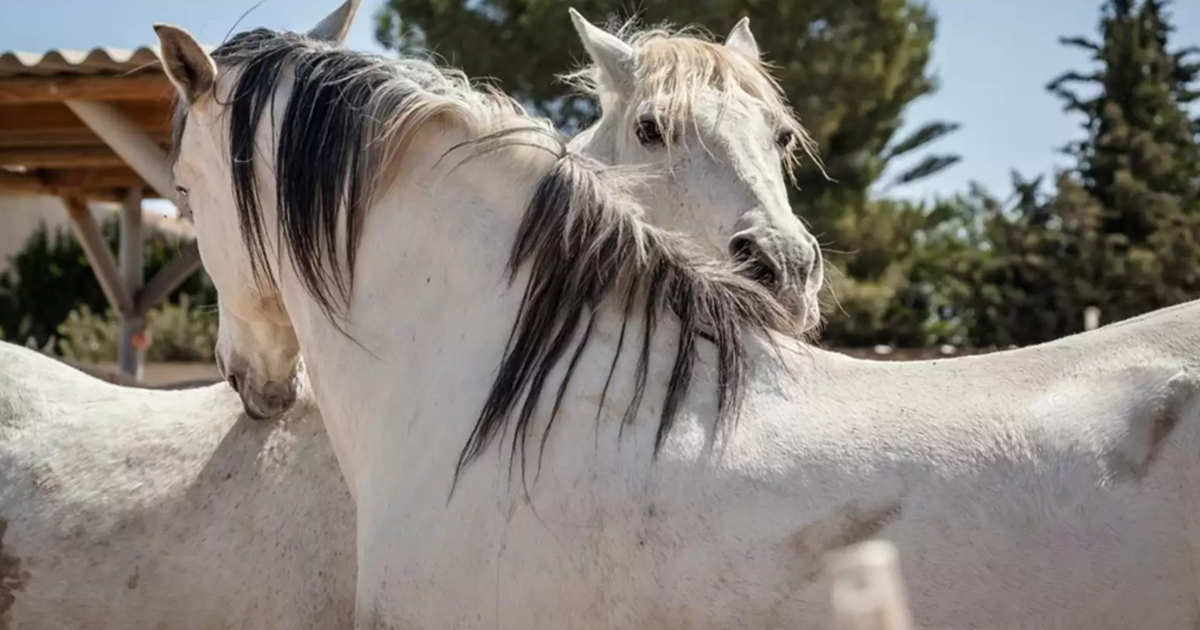 A horse, now named Diplomat, was spotted tied up in a field in 2015.