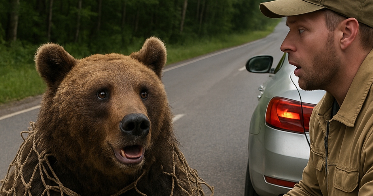 Ho visto un orso intrappolato in una rete sul bordo della strada. Mi sono