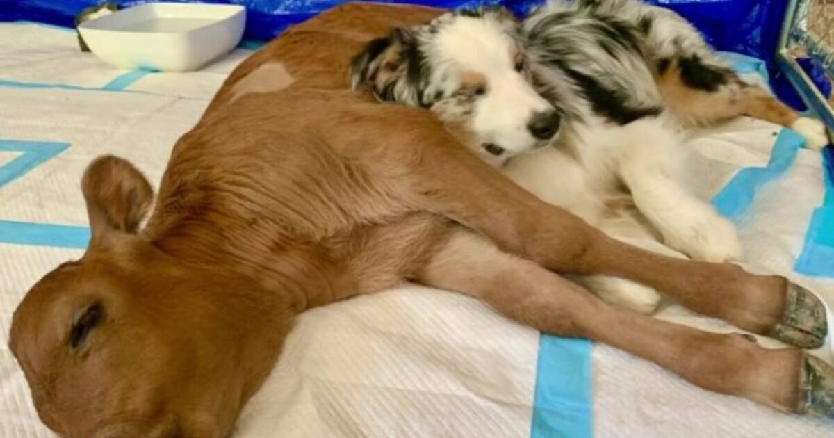 A nice couple decided to adopt a calf who was left alone as her