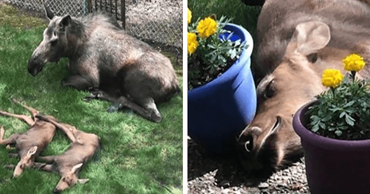 Ryan Ryndstrom noticed something unexpected in his backyard. There was mother moose and her