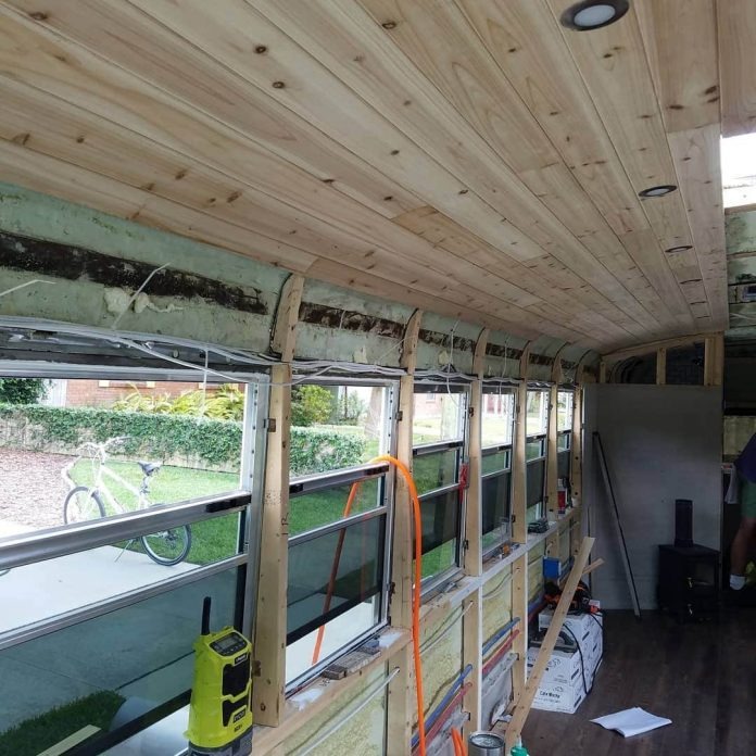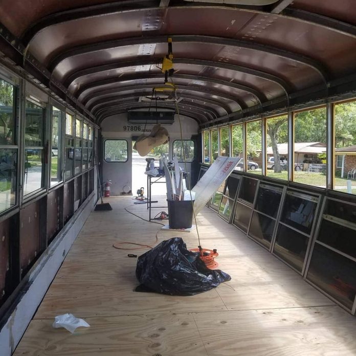 Per prima cosa, dovettero pulire l’autobus e posare un nuovo pavimento per renderlo accogliente. Poi ebbero un’idea brillante: installare una grande finestra sul tetto, così che la luce del sole potesse abbracciare ogni angolo della loro dimora.
