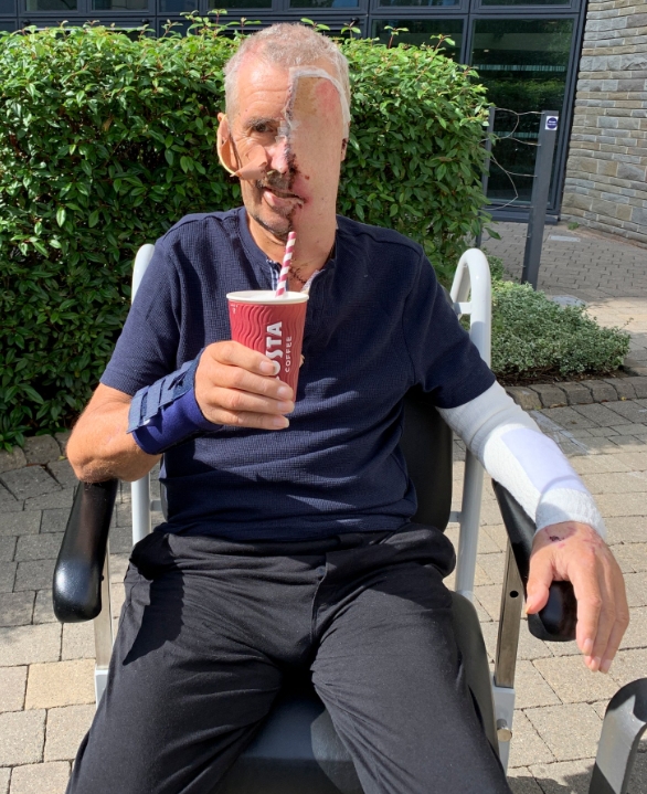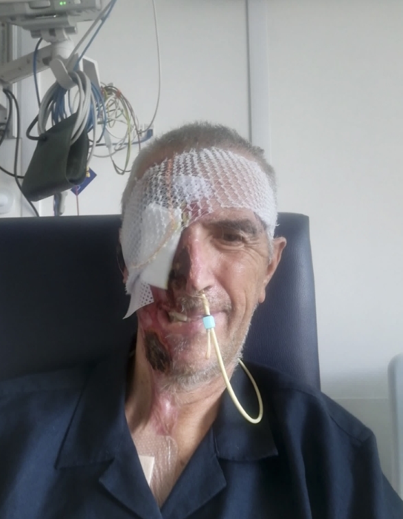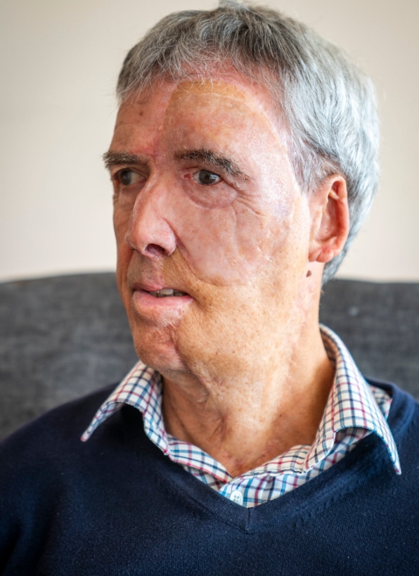 Le conseguenze furono devastanti: ustioni facciali a tutto spessore, la schiena spezzata, diverse costole fratturate e il bacino rotto. I chirurghi tentarono di salvargli l’occhio, ma alla fine furono costretti a rimuoverlo per evitare che un’infezione si diffondesse al cervello. Seguì un complesso intervento di chirurgia ricostruttiva con lembo libero, oltre a diverse operazioni per liberare i tessuti cicatriziali irrigiditi.