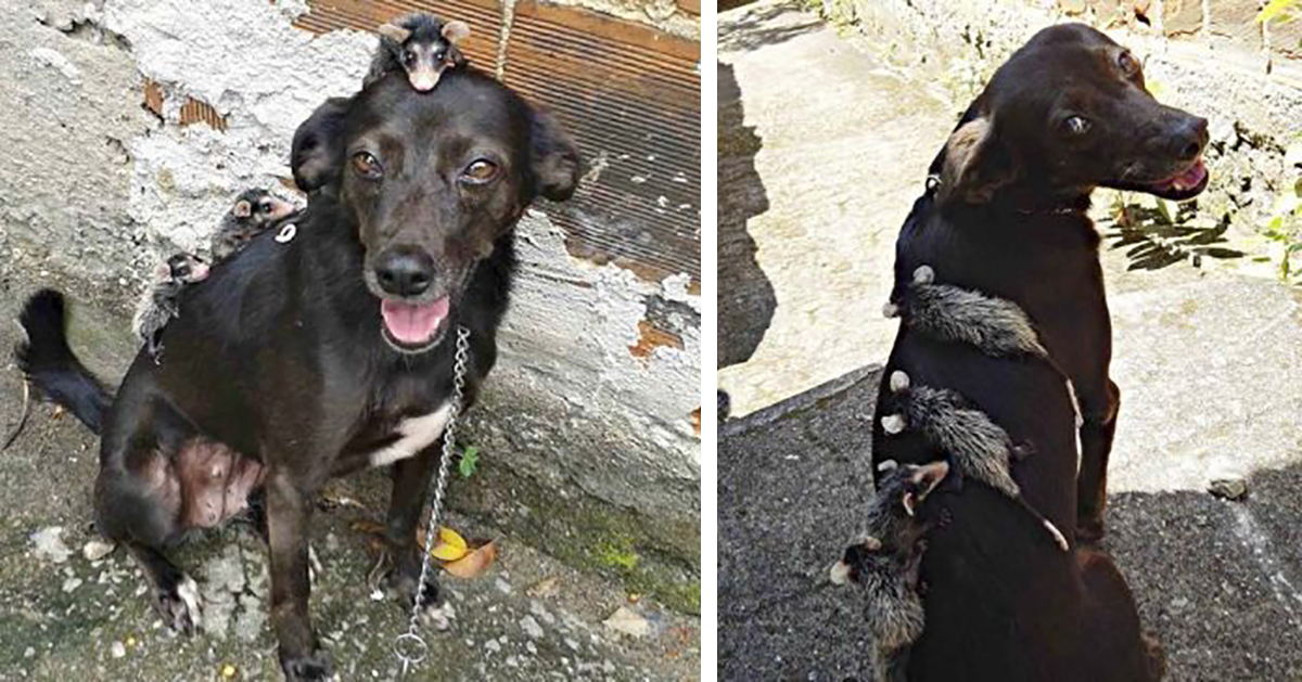 A dog in Brazil adopted a litter of possums after their mother was killed by a dog. Luckily Stephanie Maldonado found the cubs in time and took care of them with her dog Petrinha.