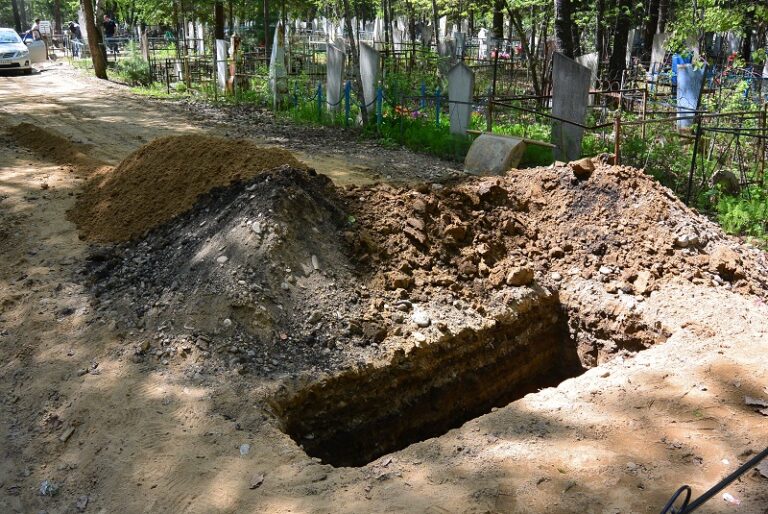 La bara era già al bordo della fossa scavata — semplice, di legno, lucida fino a brillare.