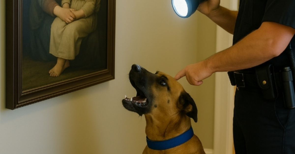 Durante la perquisizione della casa, il cane cominciò ad abbaiare furiosamente contro un vecchio quadro.