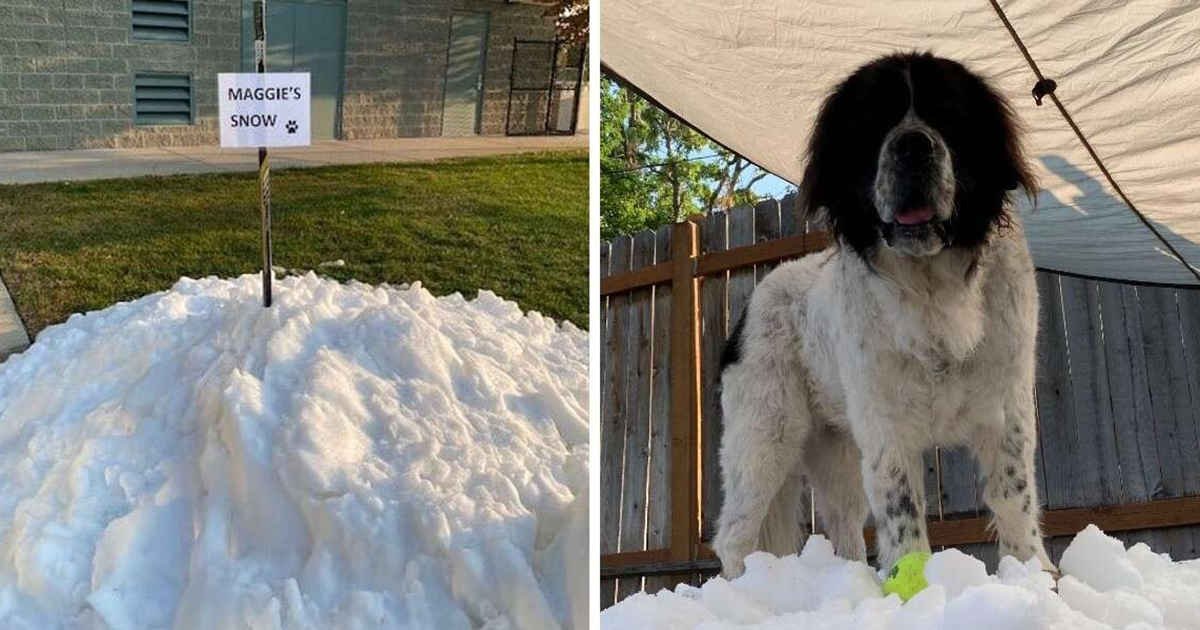 «She didn’t know what to make of it, so I took some and showed her, and she took to eating it,» Wilson said. «We dragged everything in the van to the corner of the backyard where we set up a tarp for shade, but Maggie still wasn’t cold from what was going on, so we spread it out a little bit and threw her squeaky ball in there, and from that point on the game was over. She pounced on it, buried her ball as usual, and then laid down to rest on top of the snow pile, and she was perfectly calm and comfortable.»
