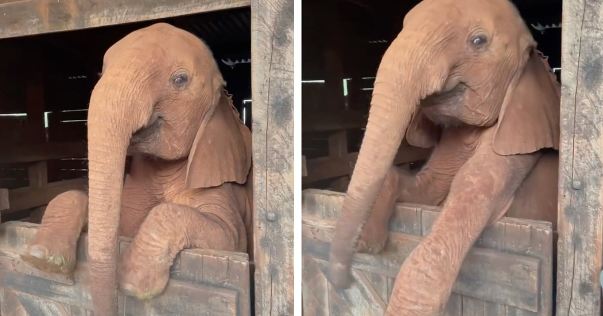 In the touching video, an elephant cub named Kinyei struggles to convince his caregiver that it’s playtime, not sleep time. However, the caregiver is not very impressed.