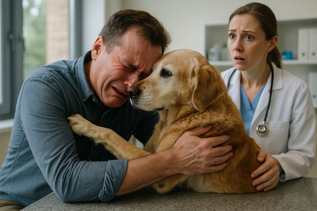 L’uomo sedeva in silenzio nello studio del veterinario, incapace di accettare ciò che stava accadendo. Sul tavolo, davanti a lui, giaceva il suo fedele compagno — il cane che gli era stato accanto in ogni gioia, in ogni dolore, in ogni notte di solitudine. Quel cane sembrava aver sempre capito il suo padrone senza bisogno di parole, come se riflettesse la sua anima.