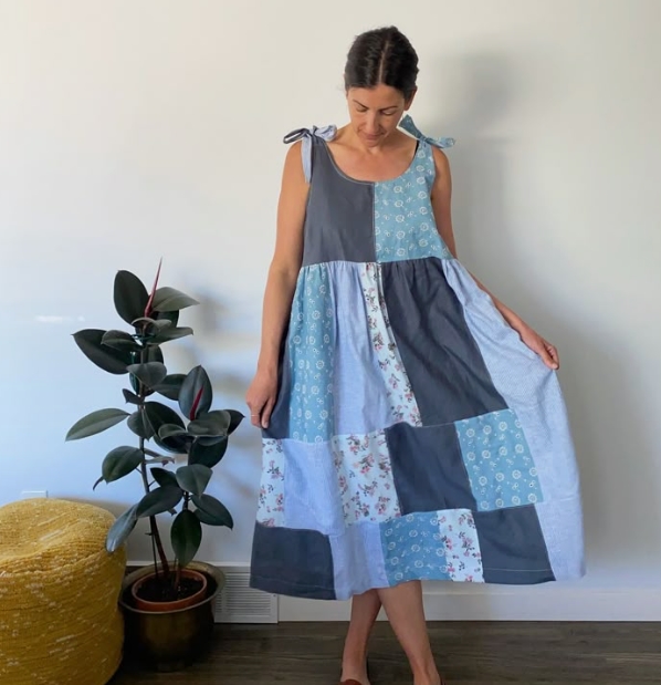 Allora ho pensato alla collezione di fazzoletti di seta di Jenna – fiori ricamati, motivi delicati, tesori color avorio accumulati negli anni – e ho deciso di tentare il tutto per tutto. Con una vecchia macchina da cucire prestata da una vicina e una serie di tutorial notturni su YouTube, ho cucito con pazienza un abito patchwork di seta color avorio e fiori blu, trasformando così il ricordo di Jenna in qualcosa che Melissa potesse indossare.