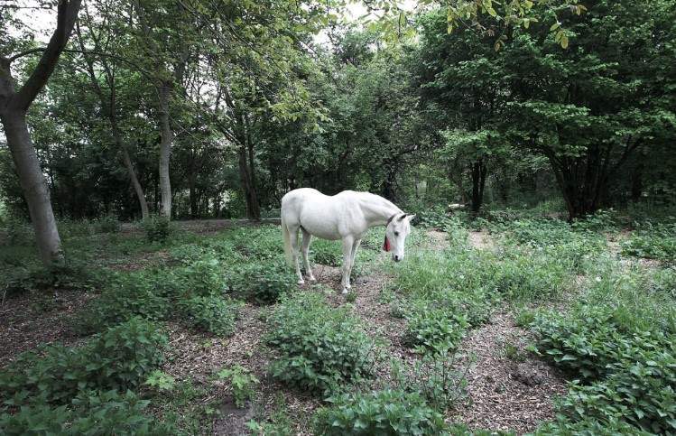 In Frankfurt, Germany, a gorgeous white Arabian horse goes out on a walk every single day and knows the way very well.