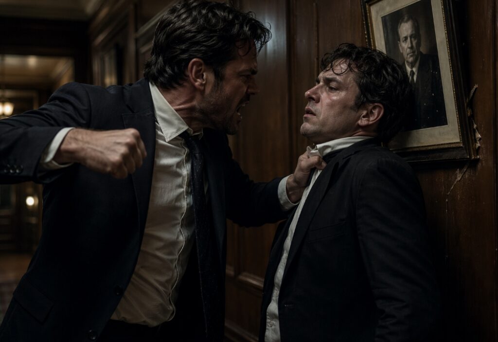 Le boiserie del corridoio scricchiolavano sotto il peso dello scontro, un suono quasi soffocato dal respiro pesante e spezzato di due uomini che avevano trascorso una vita intera a contendersi lo stesso ossigeno. Elias aveva suo fratello, Julian, schiacciato contro il muro con una forza tale che una fotografia incorniciata del loro defunto padre tremava contro l’intonaco. Le sue nocche erano bianche, la presa sul colletto di Julian così stretta da minacciare di strappare il tessuto. Per settimane, il sospetto aveva fermentato come un’infezione, alimentato da voci di registri contabili mancanti e sussurri alla società di famiglia. Elias era convinto che Julian stesse sottraendo denaro per coprire i propri crescenti debiti di gioco d’azzardo, tradendo l’eredità che avrebbero dovuto proteggere insieme.