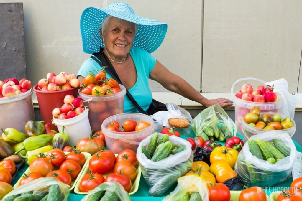 La donna, con un maglione logoro e una gonna sbiadita, aveva ordinatamente sistemato pomodori, carote e cetrioli.