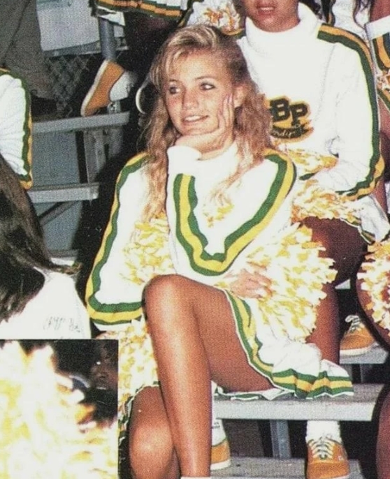 Nei reperti granulosi del 1989, Cameron Diaz è uno studio di luce incontrollabile. Esegue le routine, sì — tocca i segni, proietta il sorriso — ma c’è uno sguardo preciso, consapevole, nei suoi occhi azzurri che sembra un segreto. È il ronzio del “pre-grandezza”. Mentre la folla guarda la palla, lei osserva le uscite di sicurezza. Non è solo una cheerleader; è una persona che aspetta che il resto del mondo si sintonizzi sulla sua frequenza.
