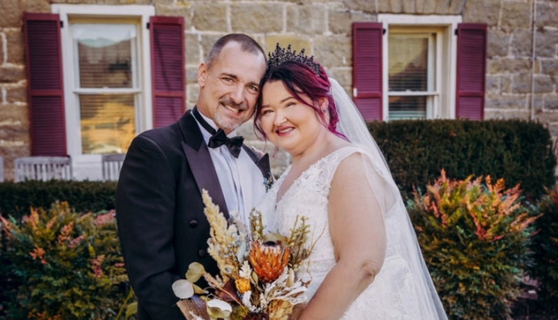 Al centro di tutto c’era Amy Slaton, una visione in pizzo vittoriano e tiara nera, che sembrava meno una star dei reality e più una donna che aveva finalmente trovato il proprio santuario. Il dettaglio più sorprendente della giornata non era la storia “infestata” della location, ma lo shock di un rosa vibrante che spuntava sotto il velo. Era un “colore speciale” richiesto dallo sposo, Brian Lovvorn, e Amy lo indossava come fosse un distintivo d’onore.