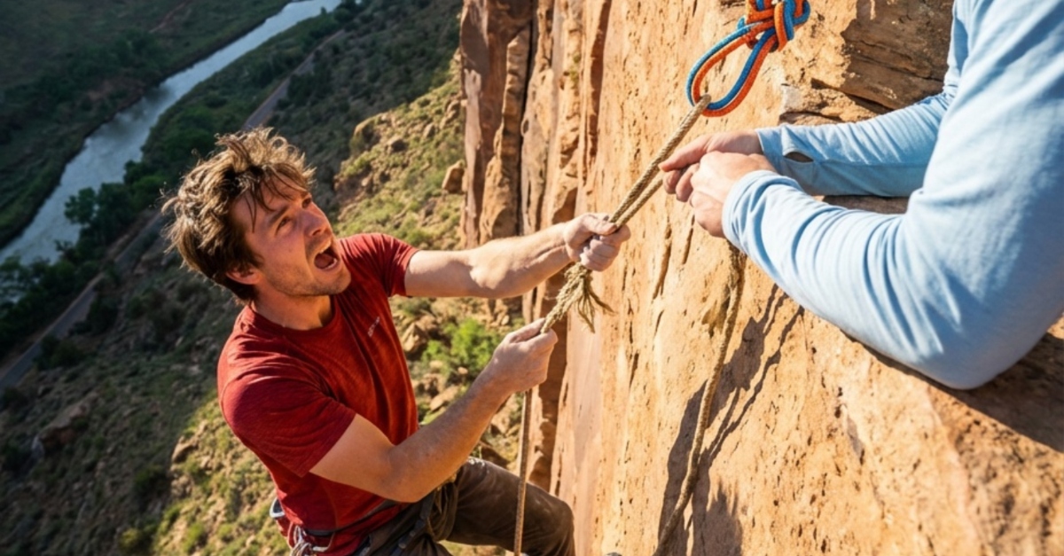 Lo “sfilacciamento” che percepiva non era la corda che si spezzava—era la guaina che si accumulava contro l’anello di ferro, creando un arresto naturale. Julian, fermo e compiaciuto mentre teneva la corda, non si rendeva conto che più la “tratteneva” senza tirare, più stava in realtà incastrando il nodo in un blocco permanente e immobile. Elias capì che non aveva bisogno che Julian lo tirasse su; aveva solo bisogno che restasse esattamente dov’era per fare da contrappeso. Con una scarica di adrenalina, Elias infilò la mano in tasca per prendere il suo anello prusik di riserva.