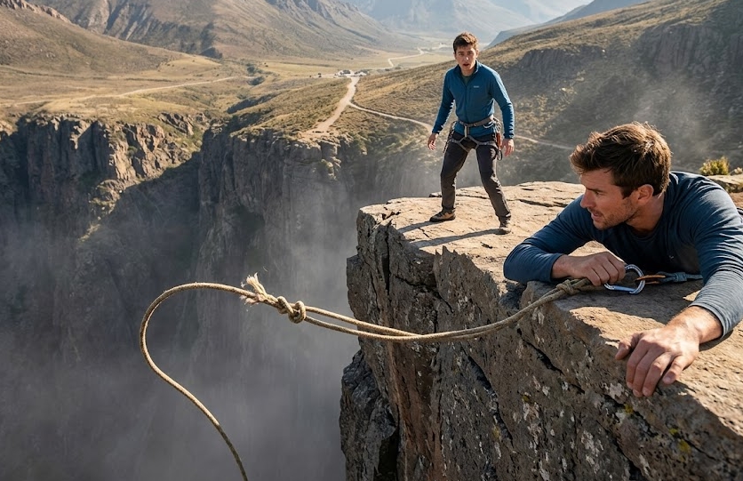 Il vento sferzava i bordi frastagliati di calcare, portando le grida disperate dell’uomo nel vasto canyon vuoto sottostante. Le dita di Elias erano consumate, la corda di canapa ruvida che gli mordeva i palmi come una sega smussata. Ogni muscolo degli avambracci urlava mentre scalciava contro la parete rocciosa a picco, cercando un appiglio che non c’era. Sopra di lui, la sagoma di Julian era un contorno scuro e netto contro il sole accecante del pomeriggio. Julian non si sporse per offrire una mano; rimase semplicemente lì, con gli stivali ben piantati vicino al punto di ancoraggio, il volto freddo quanto l’aria di montagna.