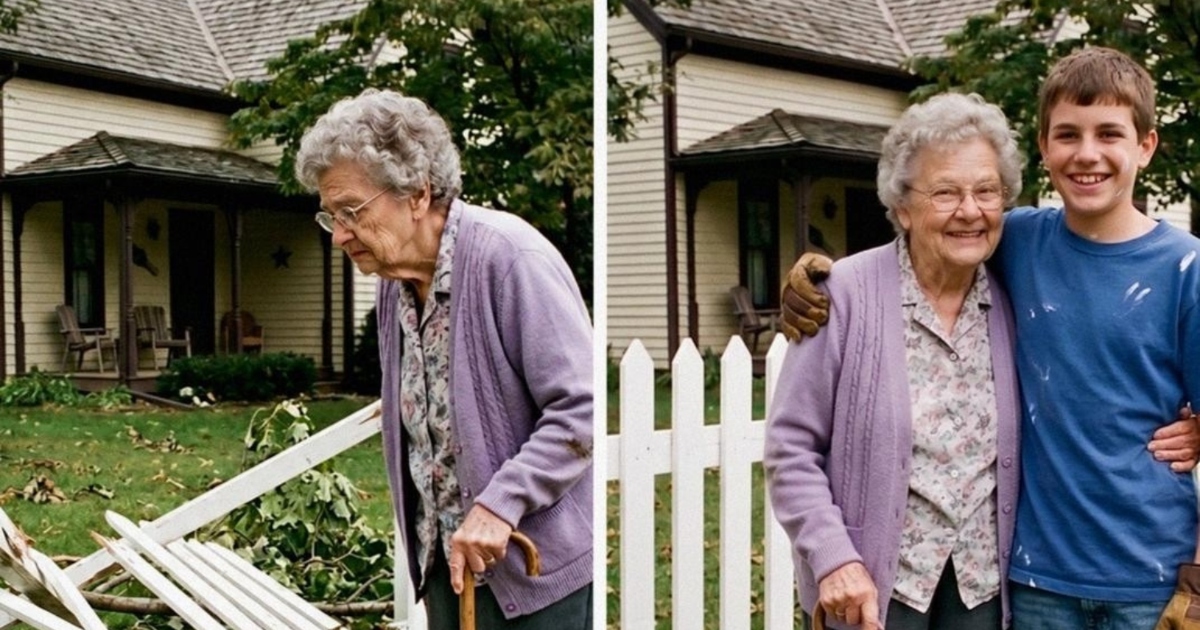 Min fjortonårige son reparerade staketet hos vår äldre granne efter stormen — nästa morgon kom poliser med ett meddelande som hon hade lämnat till honom.
