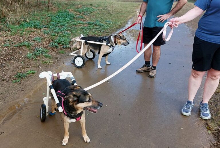 Il nostro giardino si trasformò presto in un laboratorio improvvisato, dove Ethan raccolse vecchie parti di biciclette, ruote di passeggini e tubi in PVC per costruire carrozzine su misura. Con mani pazienti e una determinazione instancabile, creò piccoli supporti che permisero ai cani di muoversi di nuovo, rotolando in avanti e riconquistando la loro libertà. Vederli fare i primi passi su ruote riportò nella nostra casa una gioia che mancava da tempo. Ma Ethan non si fermò lì: usò tutti i suoi risparmi per costruire un rifugio solido e ben isolato, assicurandosi che quei cani avessero finalmente un luogo sicuro da chiamare casa.