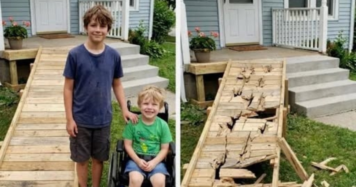 Il dodicenne Ethan, un ragazzo con un innato senso di giustizia, notò che il nostro giovane vicino Caleb era prigioniero sulla propria veranda. Caleb usava una sedia a rotelle, ma la sua casa aveva quattro ripide scale e nessuna rampa, così poteva solo osservare da lontano i bambini del quartiere giocare. Dopo aver scoperto che l’assicurazione non avrebbe coperto i costi per una rampa, Ethan decise di onorare la memoria del padre defunto — un pompiere che gli aveva insegnato a costruire — sacrificando i suoi risparmi e costruendone una da solo. Dopo giorni di misurazioni, tagli e levigature, Ethan installò una rampa di legno che finalmente permise a Caleb di scendere sul marciapiede e unirsi ai bambini locali in una gara.