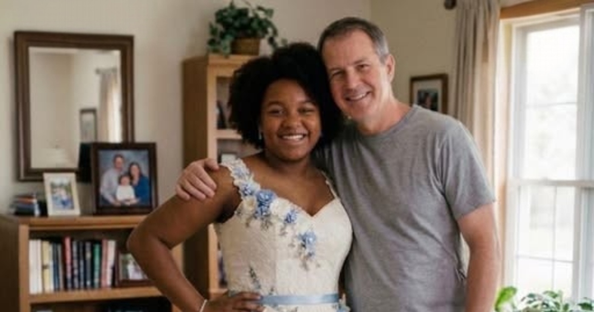 Una settimana prima del ballo, finalmente aprì una sacca porta-abiti e rivelò uno splendido abito color avorio, decorato con fiori blu ricamati a mano. Ero in lacrime quando mi resi conto che non mi aveva semplicemente fatto un vestito; aveva meticolosamente rielaborato l’abito da sposa di mia madre, così che lei potesse “accompagnarmi” al ballo. Non era solo un capo da sera: era una manifestazione fisica del suo amore e della storia della nostra piccola famiglia resiliente. Quando lo provai, l’orgoglio silenzioso di mio padre mi fece sentire di meritare tutto il bene del mondo, molto più di quanto il nostro conto in banca avrebbe potuto suggerire.
