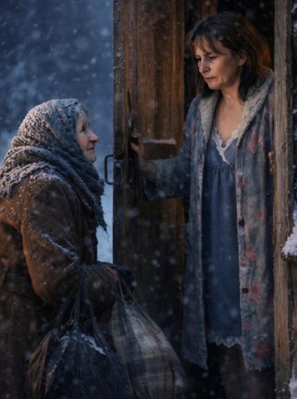 Dopo la morte di mio marito, mi sono ritrovata sola con i miei quattro figli. Sopravvivevamo coltivando verdure nel nostro orto, ma quel dicembre, con il suo freddo glaciale, ci aveva messi all’angolo. La legna stava per finire e nel frigorifero era rimasta solo una fetta di pane secco, conservata per i bambini. A mezzanotte, verso le due, tra il fruscio della tempesta, sentii un lieve bussare alla porta. Guardando dalla finestra, scorsi l’ombra di una donna anziana, esausta, intrappolata nella bufera di neve.