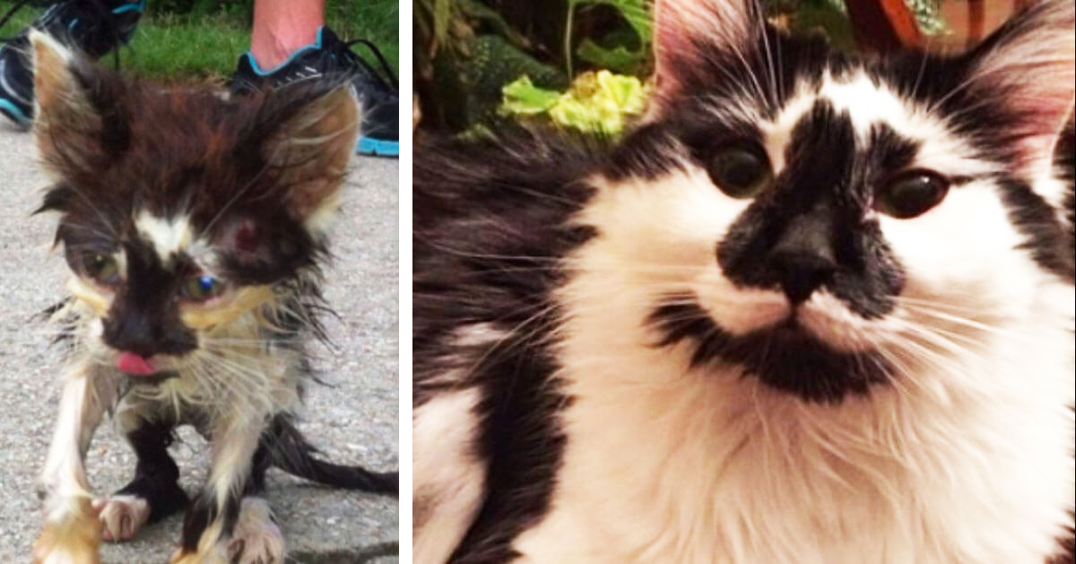 The warm-hearted woman named Kathleen gound the tiny kitten in a horrible state. He