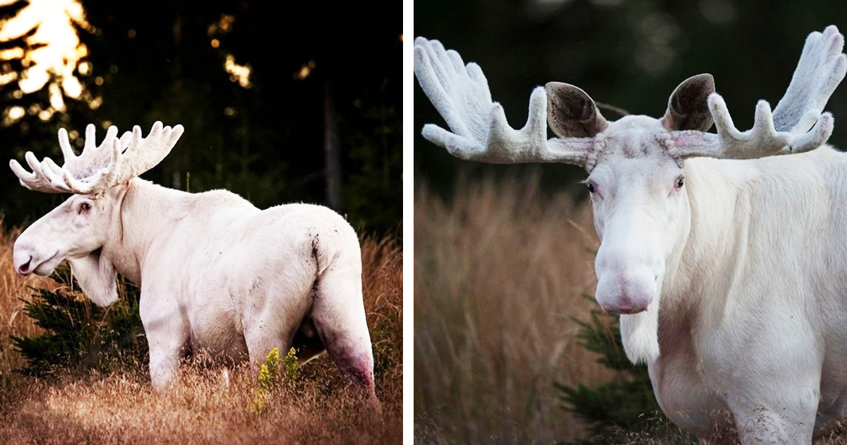 The astonishing white moose was spotted around forests in Sweden by the wildlife photographer