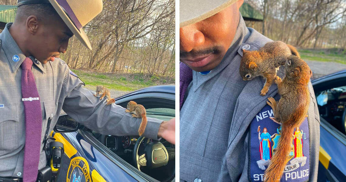 Not long ago, in Ithaca, New York State Trooper LaVonte’ Lee noticed a pair of baby squirrels in the center of a crowded street.
