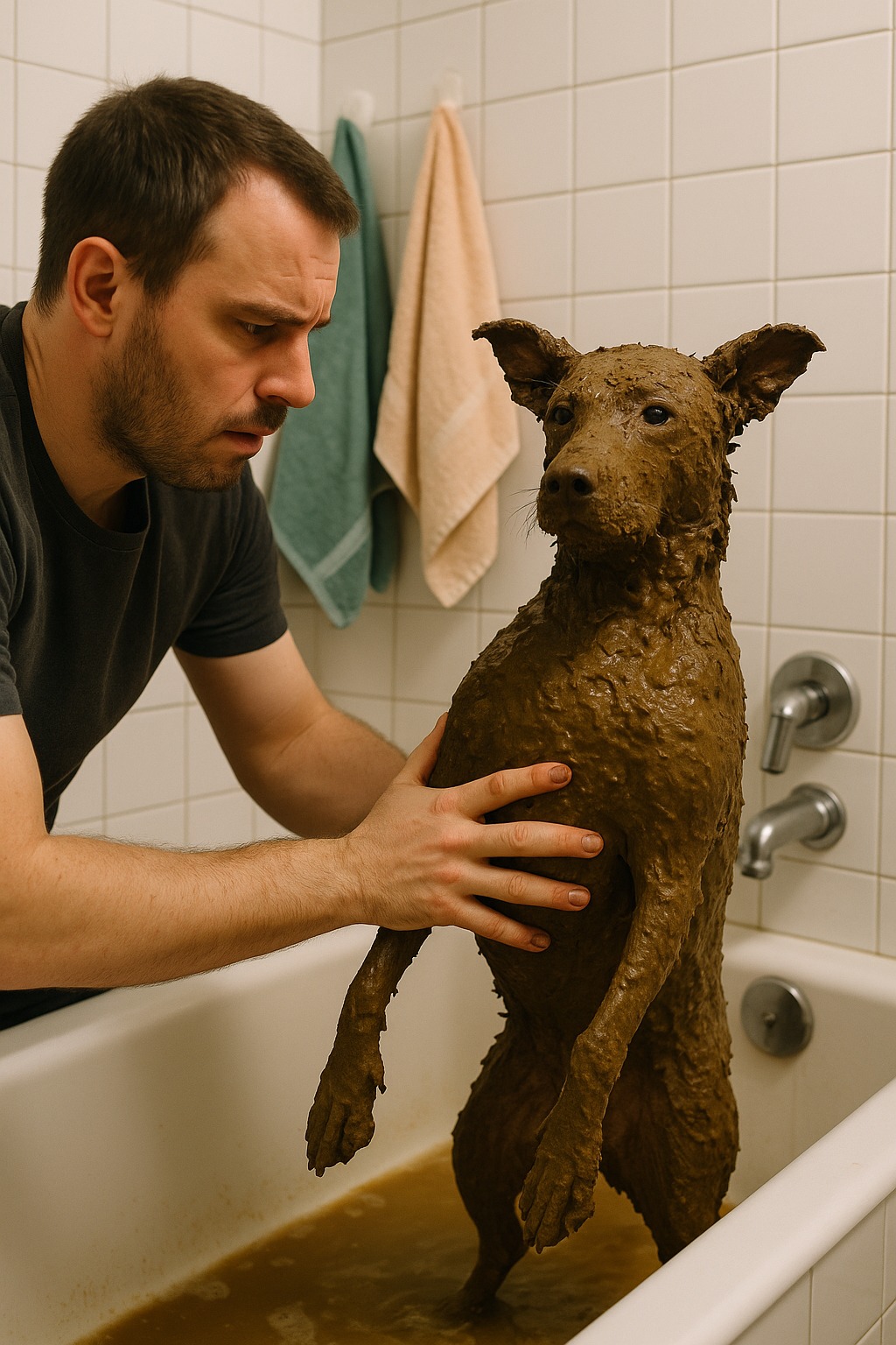 Arrivato a casa, riempii la vasca con acqua tiepida per lavarlo. Quando l’acqua toccò il pelo, il fango cominciò a scivolare… ed è allora che capii che non avevo tra le mani un semplice cucciolo. Rimasi sconvolto nel rendermi conto di cosa fosse davvero.