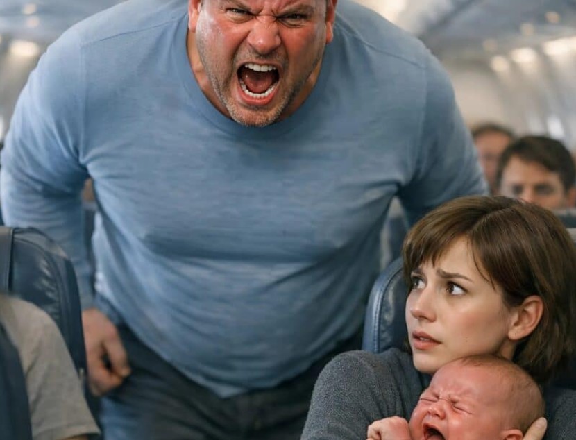 Nel frastuono dell’aereo, il pianto inconsolabile del mio bambino aveva messo tutti in tensione. L’uomo seduto accanto a me sbottò all’improvviso: