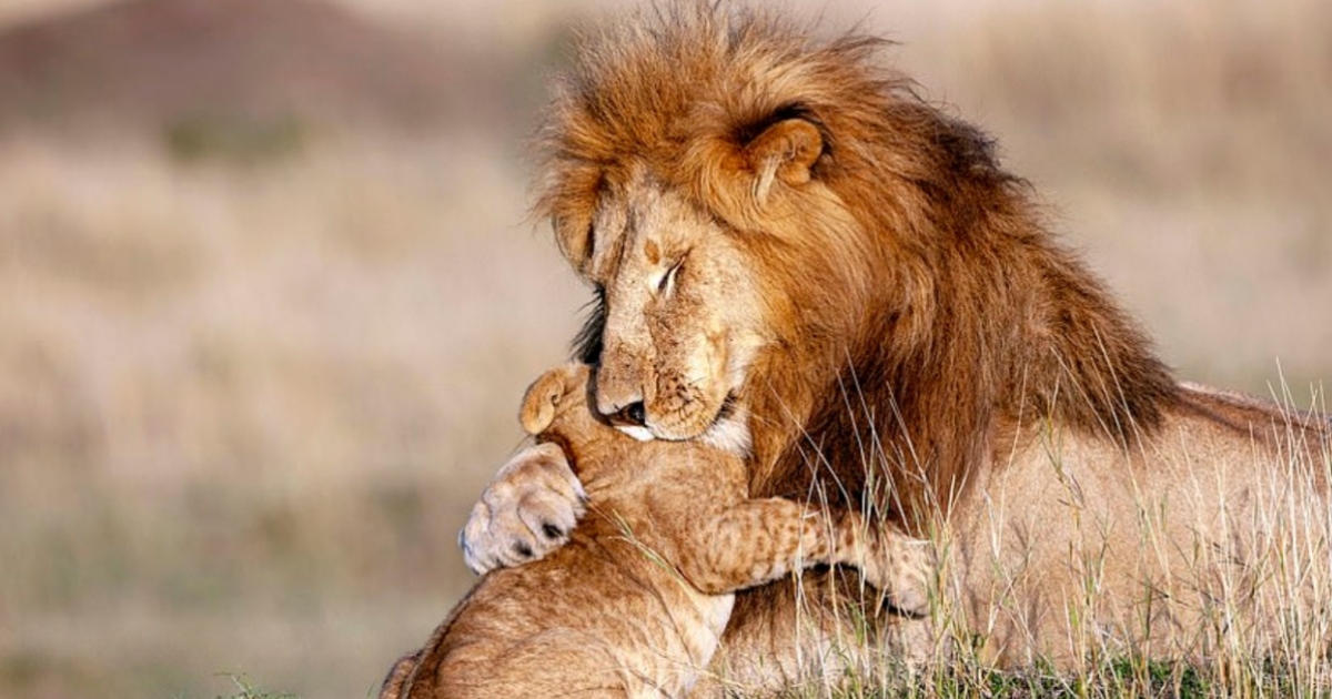The wildlife photographer Sabine Mara was in Kenya to create a factual film for children and was taking some pics in the wild when she spotted a amazing moment of how the hige lion hugged his cub softly. It was like in the cartoon «The Lion King».